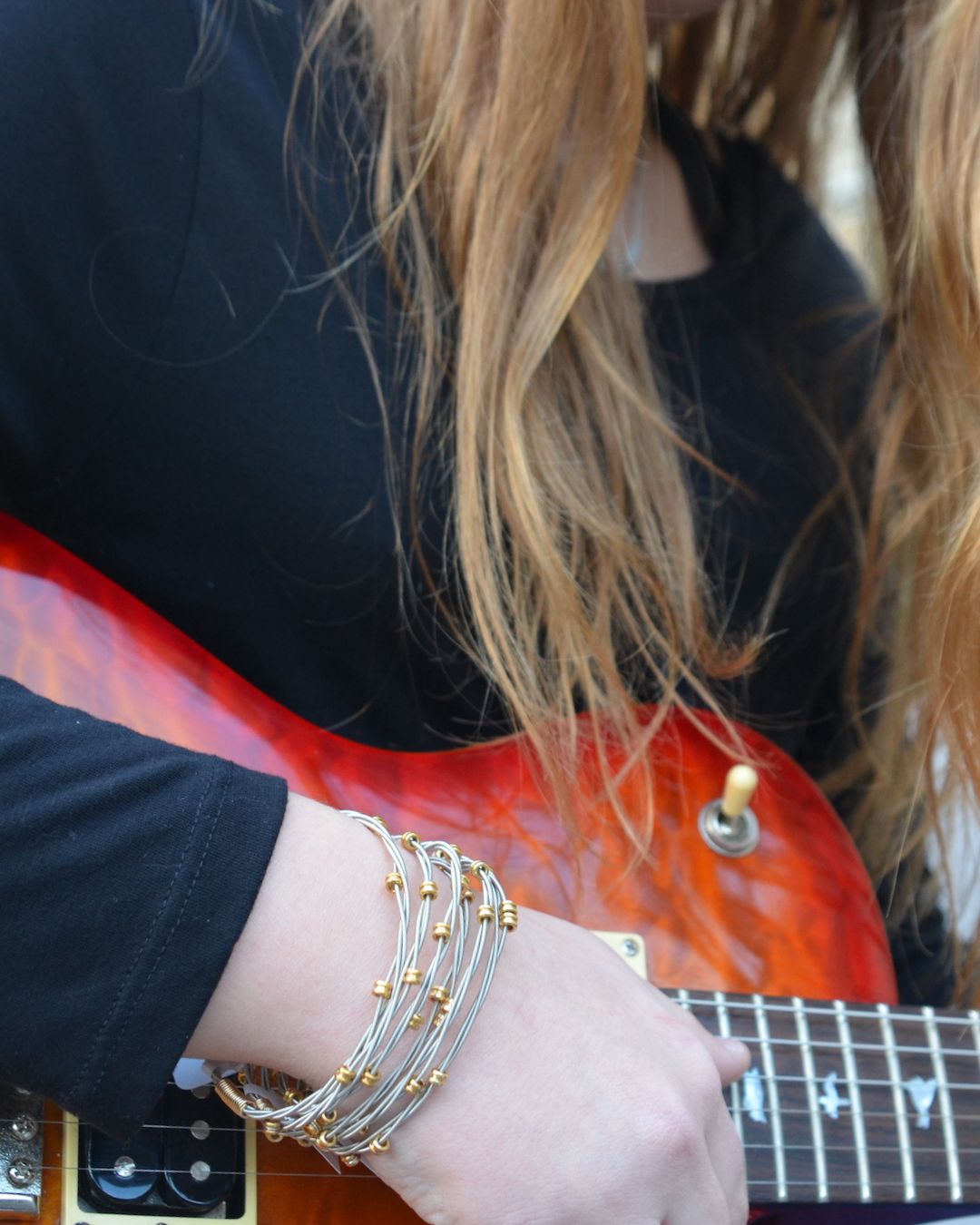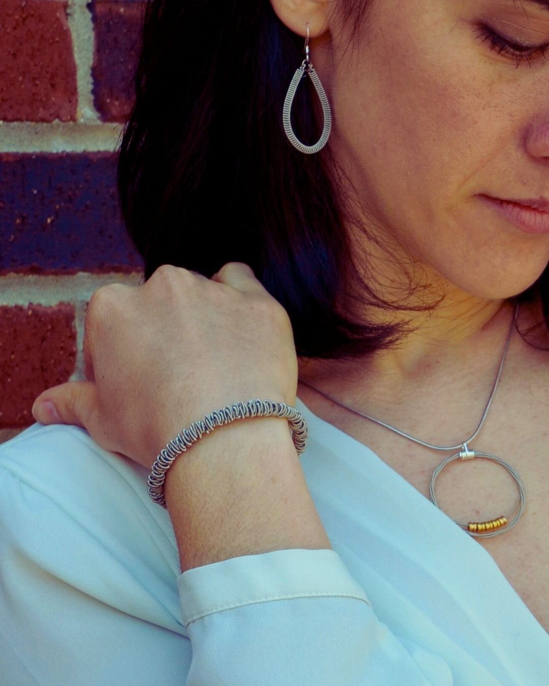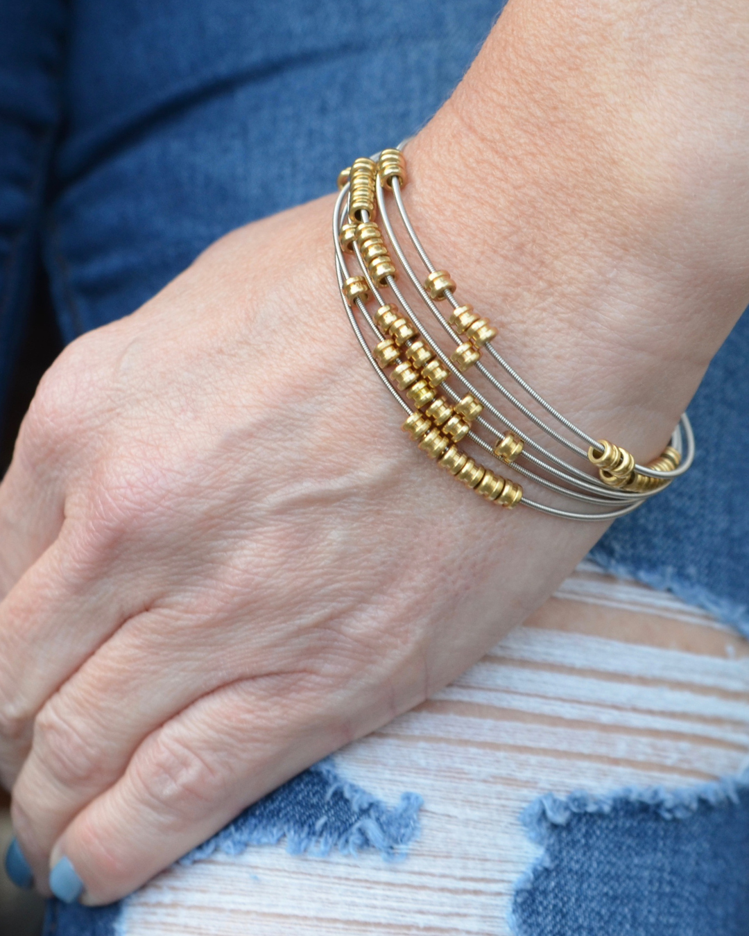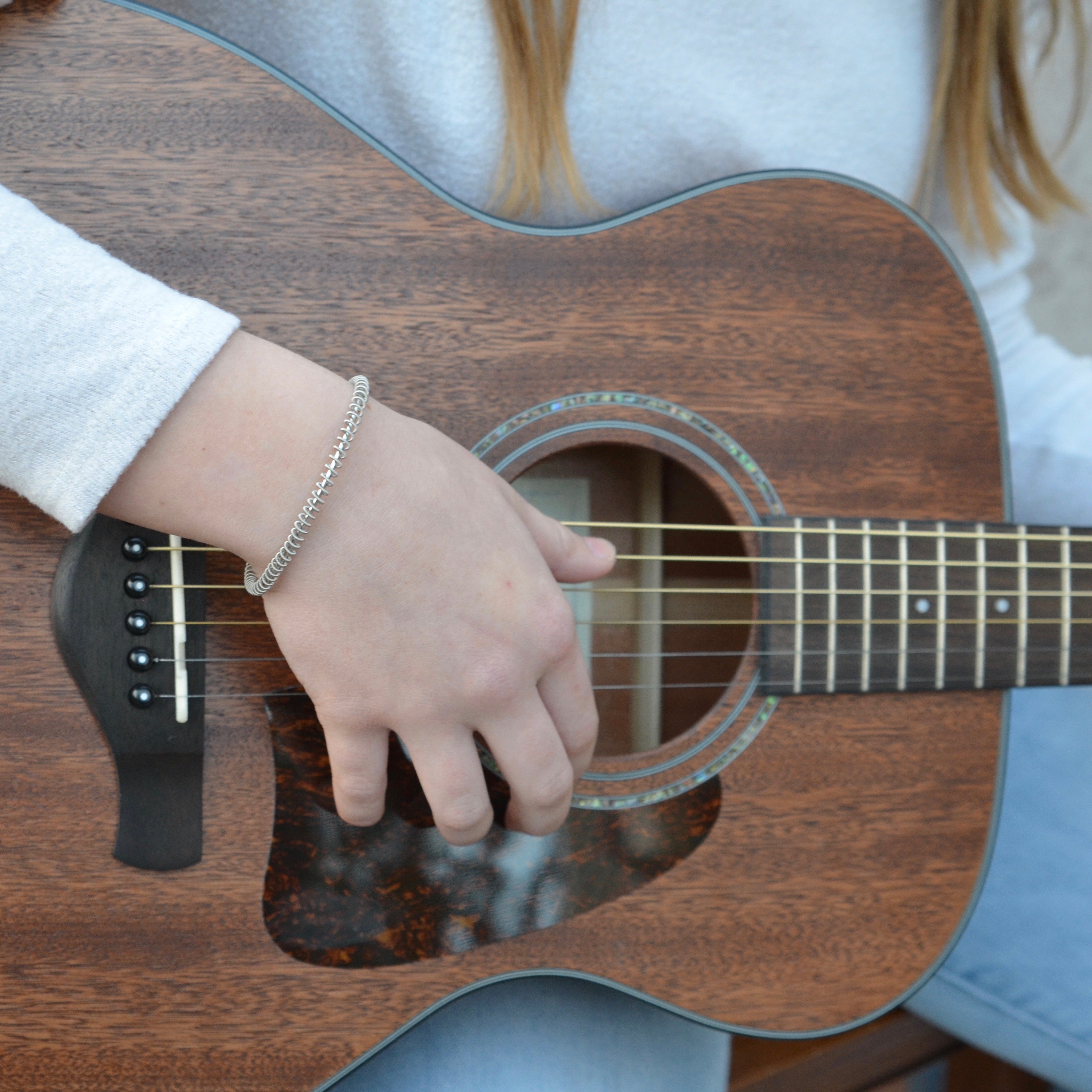 The jewelry in our Staccato collection is designed using delicate guitar string circlets stacked together to create a rich texture that captures the essence of the staccato style of music.
