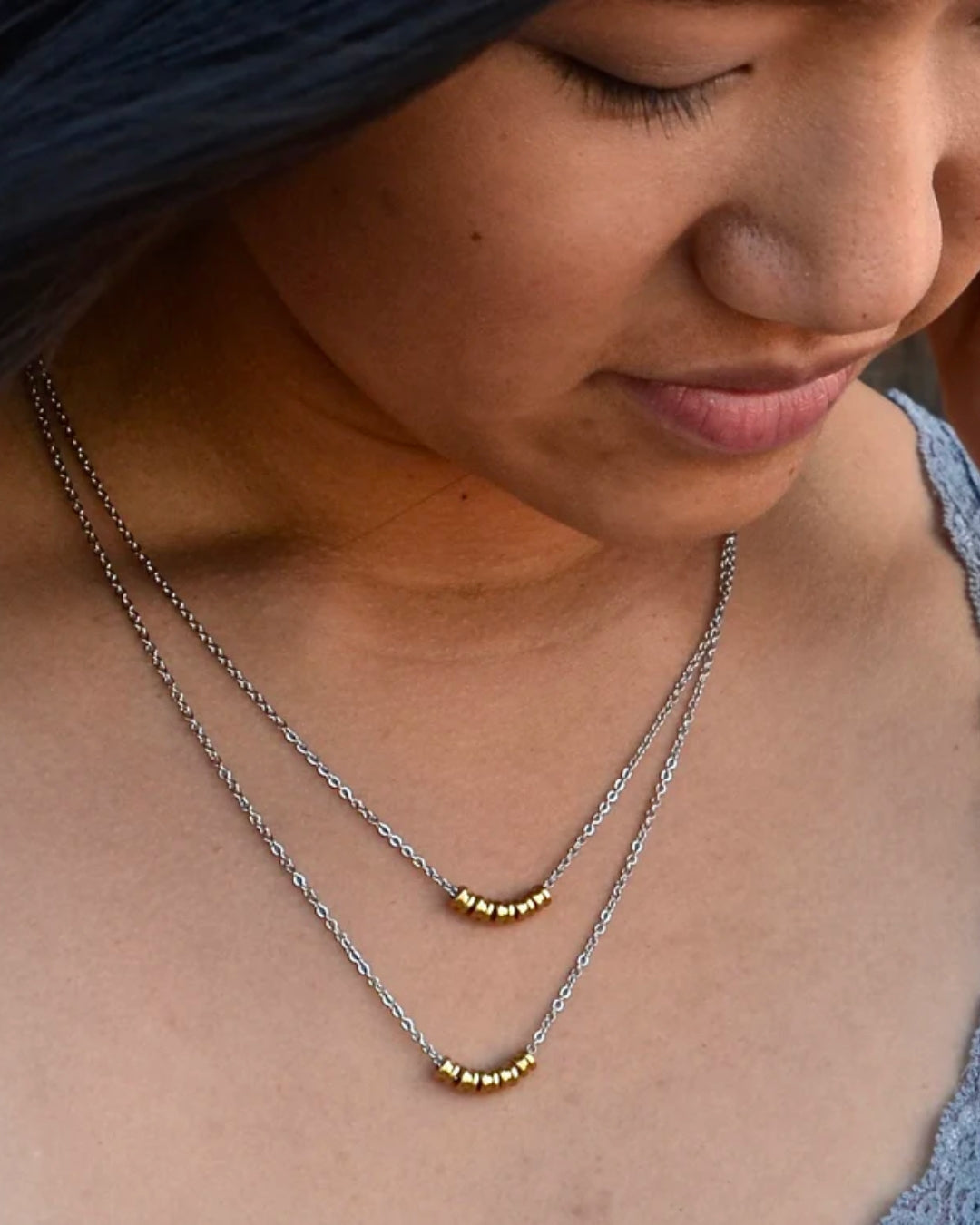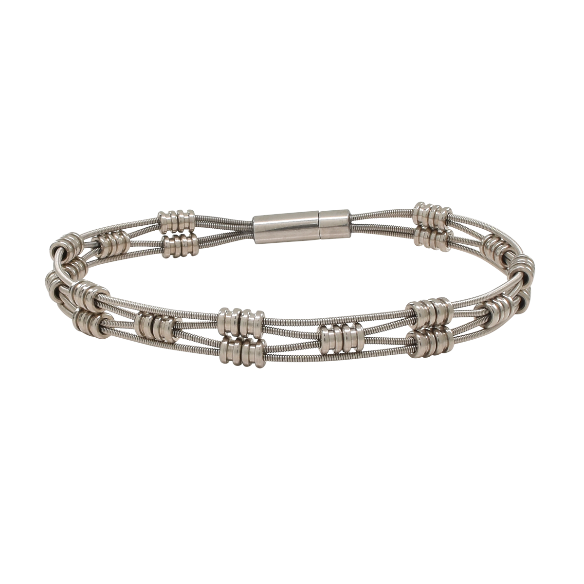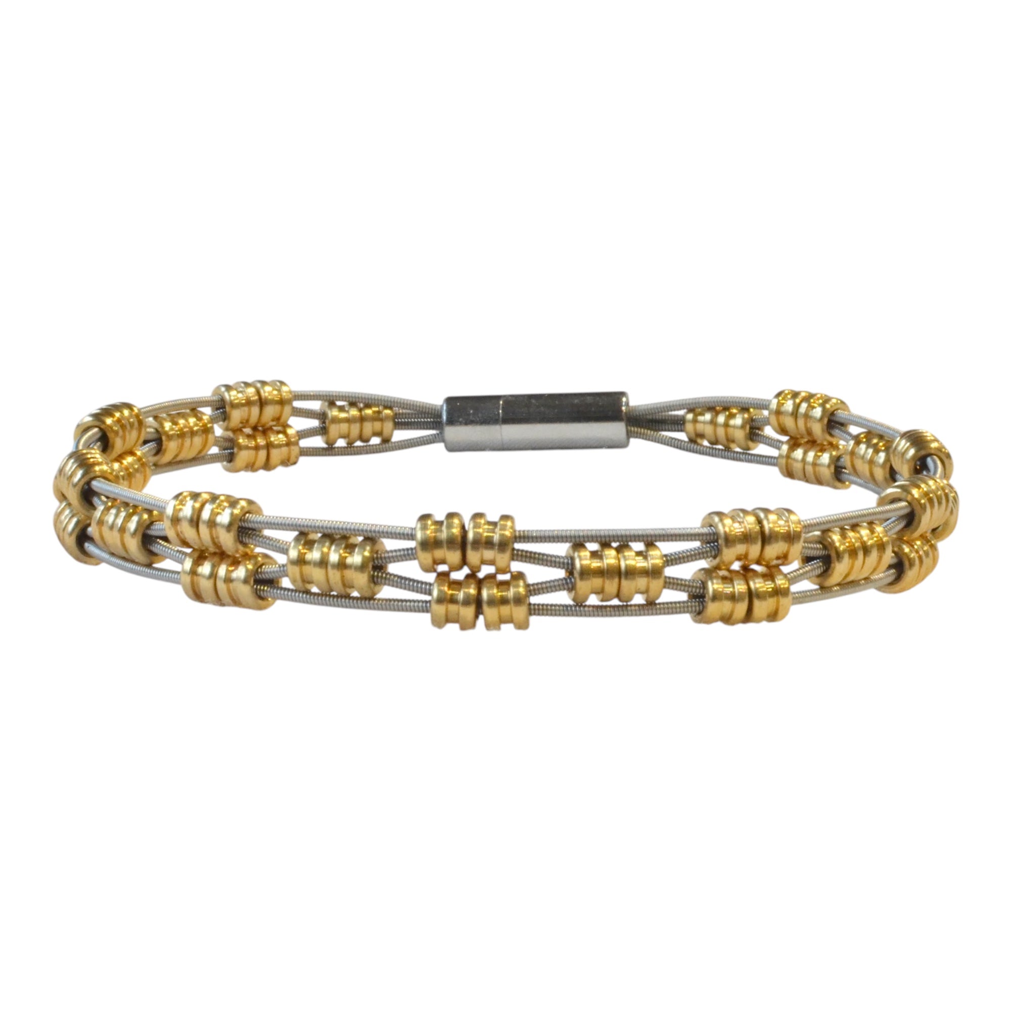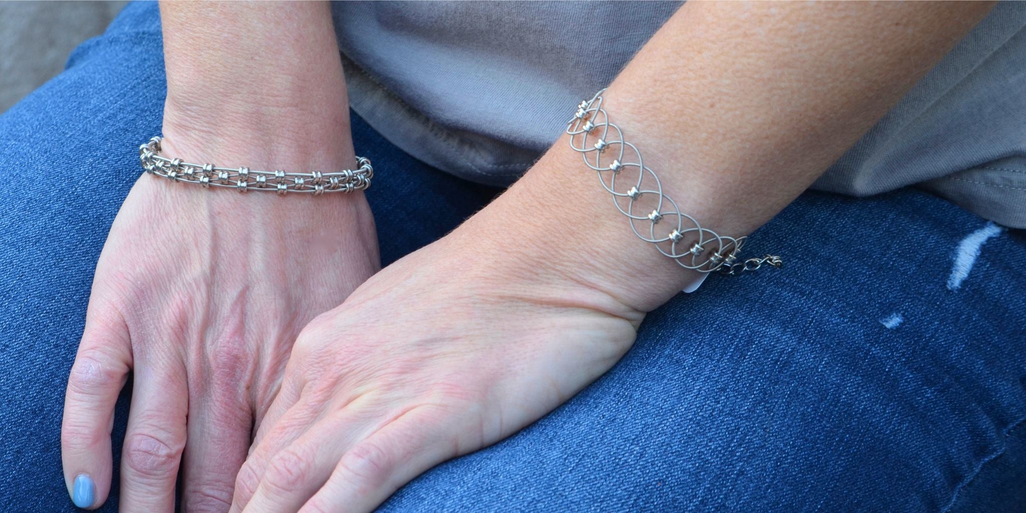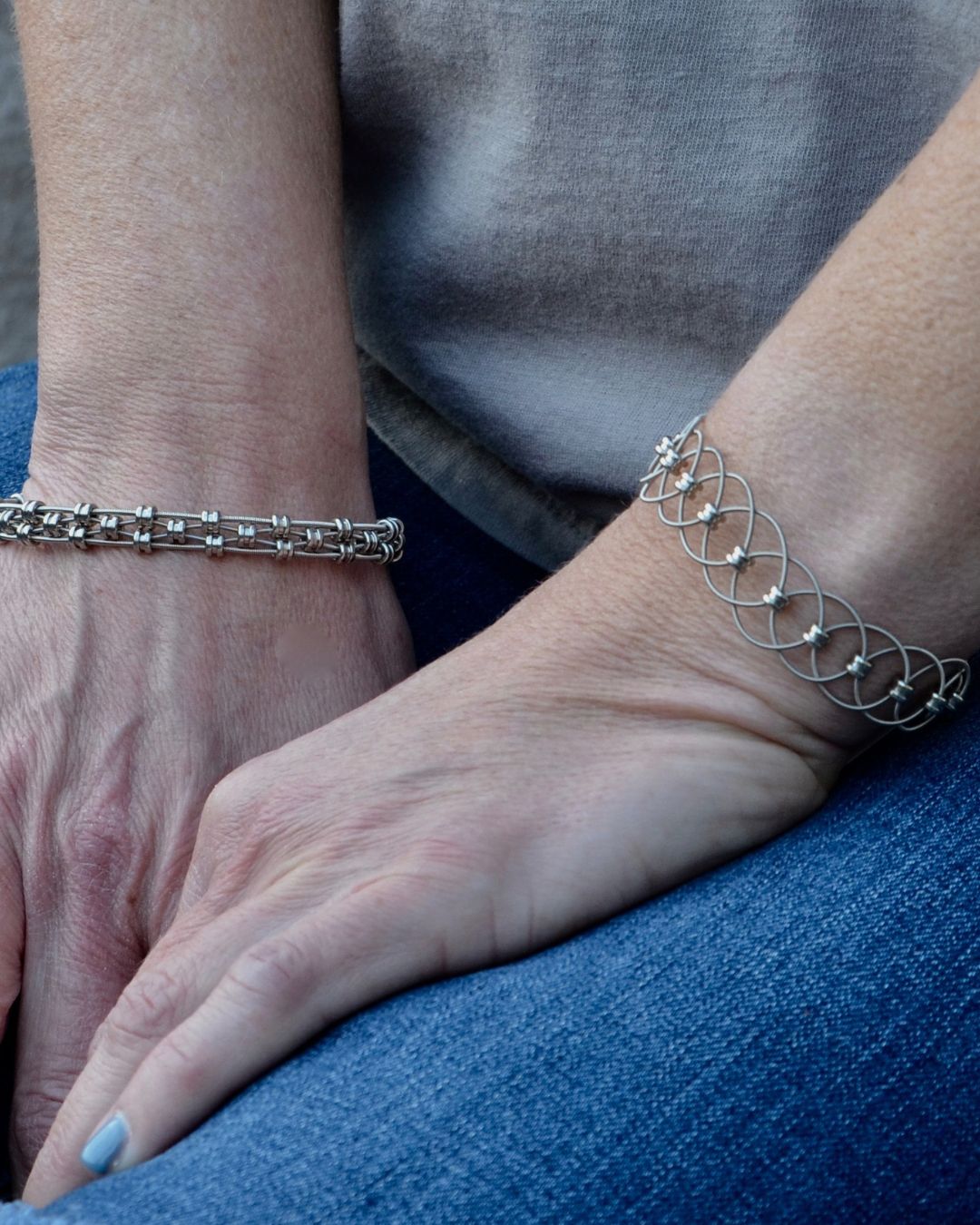 The jewelry in our Staccato collection is designed using delicate guitar string circlets stacked together to create a rich texture that captures the essence of the staccato style of music.